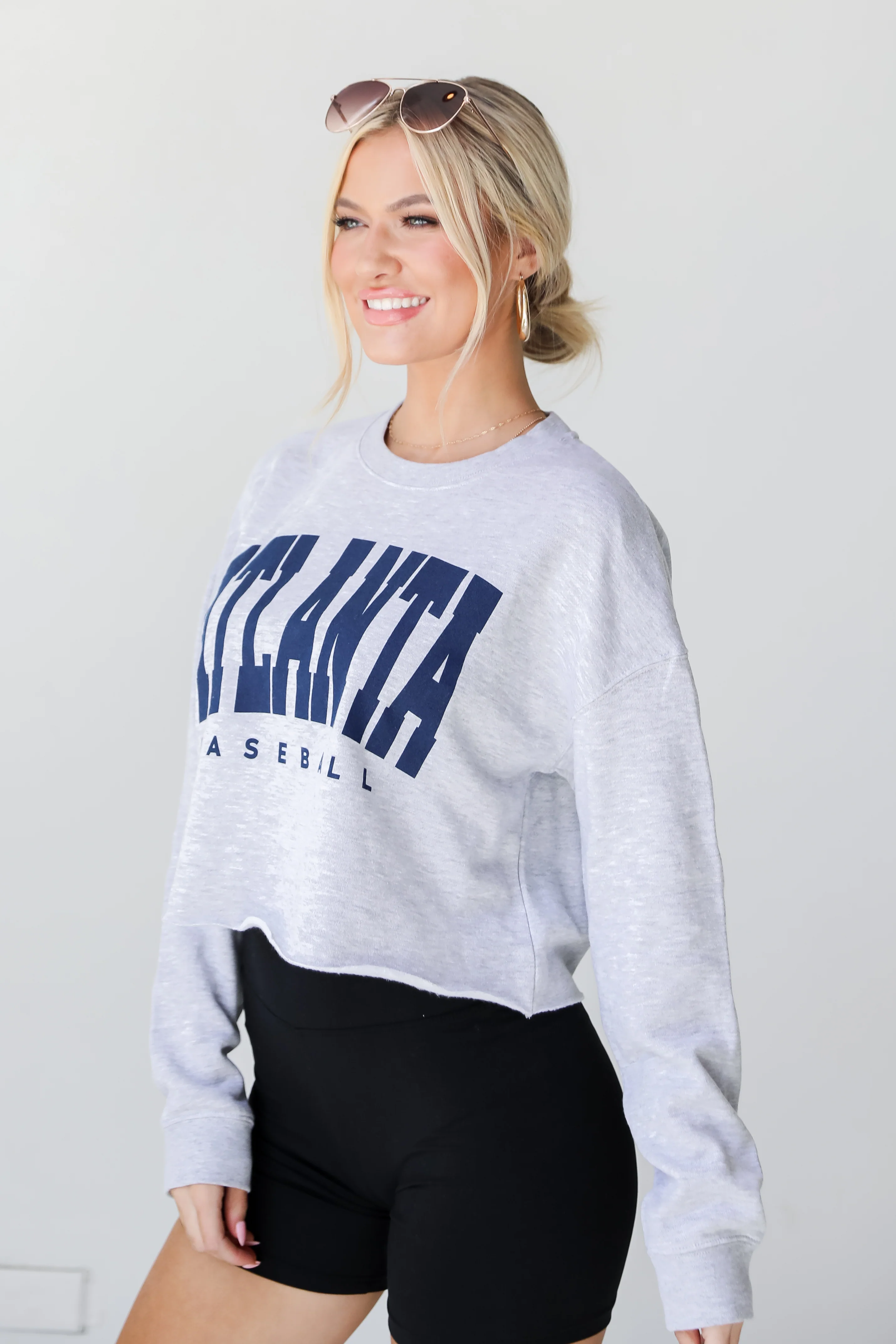Calling all Braves fans, the Heather Grey Atlanta Baseball Cropped Sweatshirt was made just for you! This comfy sweatshirt is designed with a soft and stretchy knit with a fleece interior. It features a crew neckline, long sleeves, a relaxed mid-crop fit with a raw hem, and the words "Atlanta Baseball" on the front. Style the Heather Grey Atlanta Baseball Cropped Sweatshirt with your favorite denim shorts and sneakers for game day!